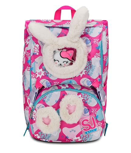 SJ Gang Sac à Dos d'école Extensible, Rose, PinkFur, Sac à Dos Double Compartiment Extensible par Fermeture éclair, Poche Porte-Bouteille, Sac à Dos école Primaire, Sac à Dos Fille, Rose, Taglia