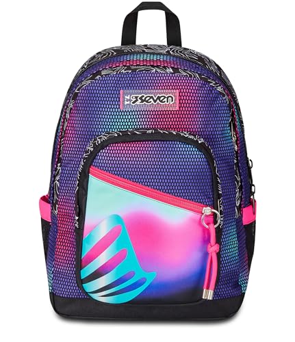 Seven Sac à dos d'école avancé, noir fuchsia, multi-shade girl, sac à dos double compartiment avec haut-parleur sans fil, poche pour ordinateur ou tablette, poche pour bouteille d'eau et organisateur,