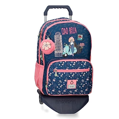 Enso Ciao Bella Sac à Dos Scolaire Double Compartiment Adaptable pour Chariot Bleu 32 x 44 x 17 cm Polyester 23,94 L, Bleu, Talla única, Sac à Dos Scolaire Double Compartiment Adaptable au Chariot
