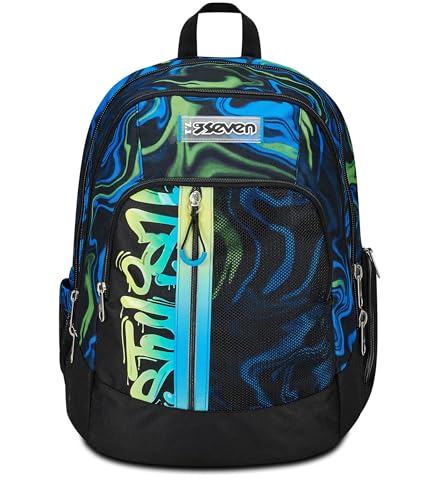Seven CHROMO FLUID Boy Sac à dos d'école primaire et moyenne pour fille - Noir - Sac à dos double compartiment - Poche porte-bouteille - Maxi capacité 32 l, multicolore, Taglia unica, Moderne