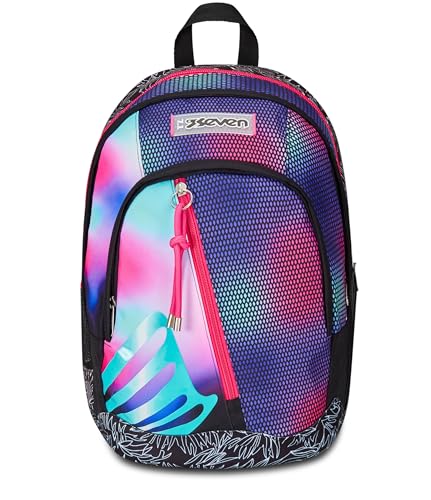 Seven Sac à dos d'école Dual, rose et violet, Shadefull Girl, sac à dos double compartiment avec poche pour PC ou tablette, poche porte-bouteille et organisateur, sac à dos pour les écoles moyennes et