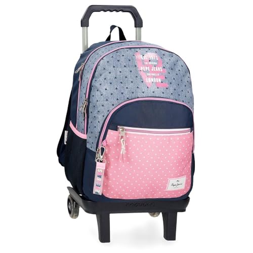 Pepe Jeans Noni Denim Sac à Dos Double Compartiment avec Chariot Multicolore 32 x 44 x 22 cm Polyester 25,81 L by Joumma Bags, Multicolore, Sac à Dos Double Compartiment avec Chariot