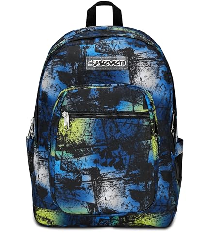 Seven Sac à Dos d'école Freethink, Bleu Jaune, garçon, Sac à Dos Double Compartiment avec Support USB, Poche pour Ordinateur ou Tablette et Poche Porte-Bouteille, Sac à Dos Moyen et supérieur, Enfant
