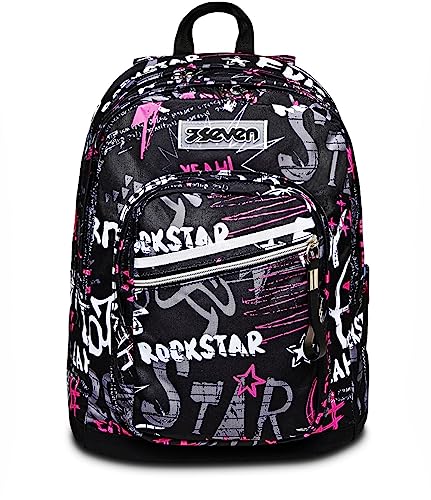 Seven Sac à Dos d'école avancé, Noir Fuchsia, Mark on Girl, Sac à Dos Double Compartiment avec Poche pour PC ou Tablette, Poche Porte-Bouteille et Organisateur, Sac à Dos pour Les écoles Moyennes et