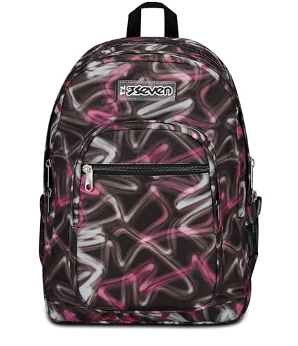 Seven Sac à Dos d'école Adavanced Pockets, Noir Fuchsia, Draft Heart, Sac à Dos Double Compartiment Multi-Poches, avec Poche pour PC, Poche Porte-Bouteille et Organisateur, Sac à Dos Moyen et