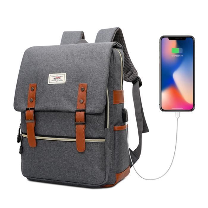 RJEU Sac à Dos Femme, Sac à Dos Ordinateur Portable, avec USB Charging Port Sac a Dos PC Portable pour Loisir, Scolaire, Affaire, H11-gray, 15.6 pulgadas, sac à dos