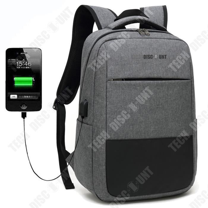 Sac à dos PC portable 15.6 pouces antivol avec port de chargement USB - noir