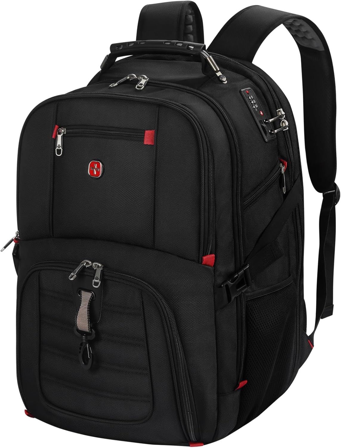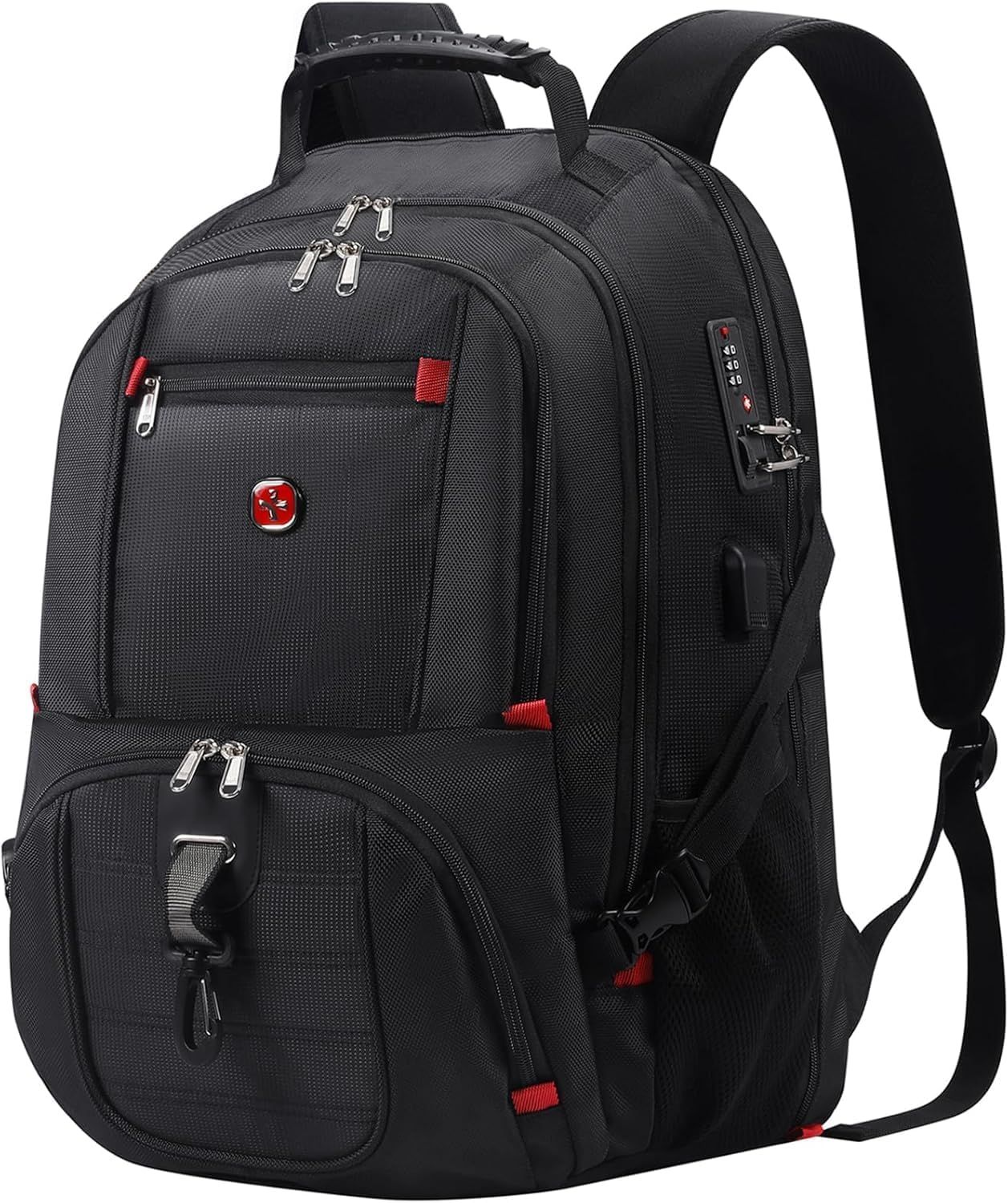 Sac A Dos Ordinateur Homme, Antivol Grand 17 Pouces Sac À Dos Pc Portable Travail Voyage, Imperméable Multipoches Laptop Backpack Avec Usb Charging Port Pour Affaire College Loisirs Scolaire, Noir