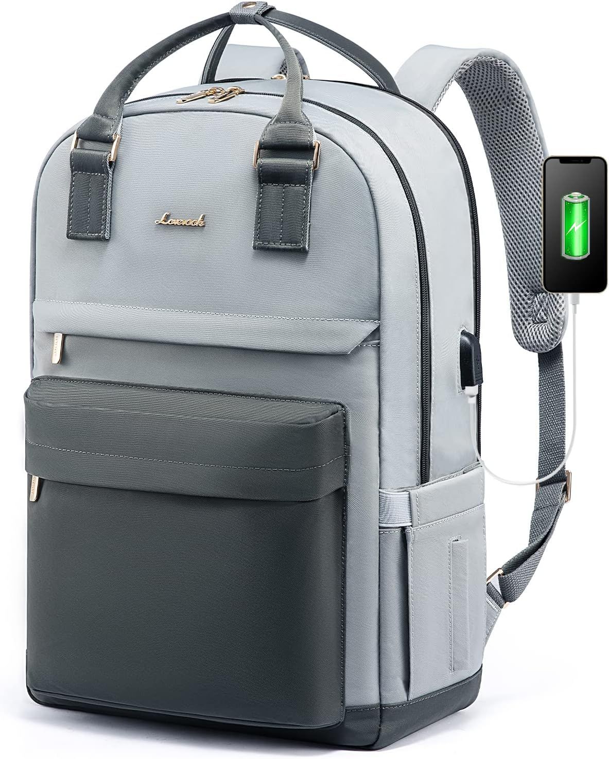 LOVEVOOK Sac à Dos Femme, Imperméable Sac a Dos PC Portable 17 Pouces, élégant Sac à Dos pour Ordinateur avec Port de Chargement USB, pour Collège Affaires Travail Gris