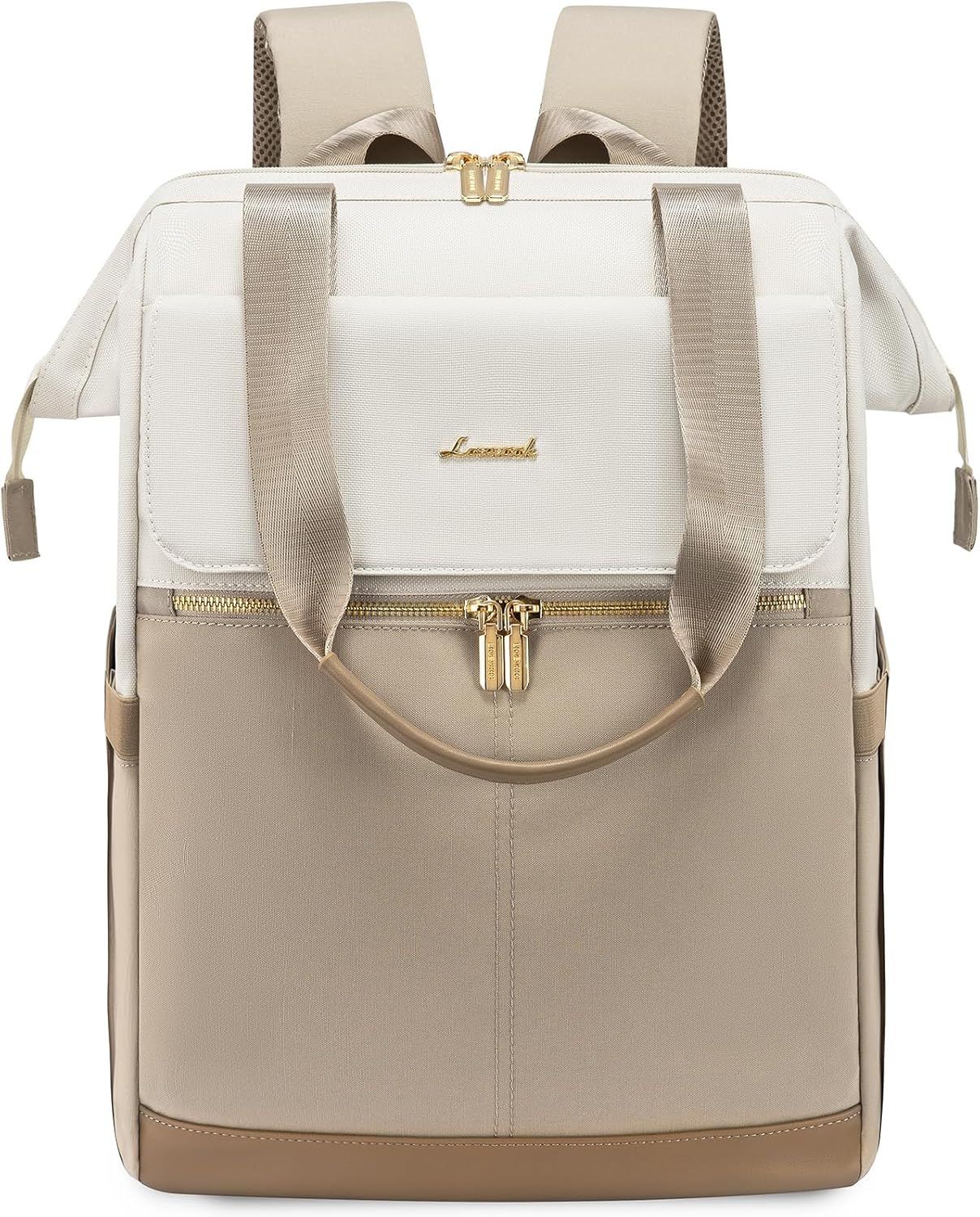 LOVEVOOK Sac à Dos Femme, Sac à Dos pour Ordinateur Portable 17 Pouces, Imperméable Sac a Dos Femme PC Portable pour Collège Affaire Travail Voyage, Sac à Dos Beige Gris