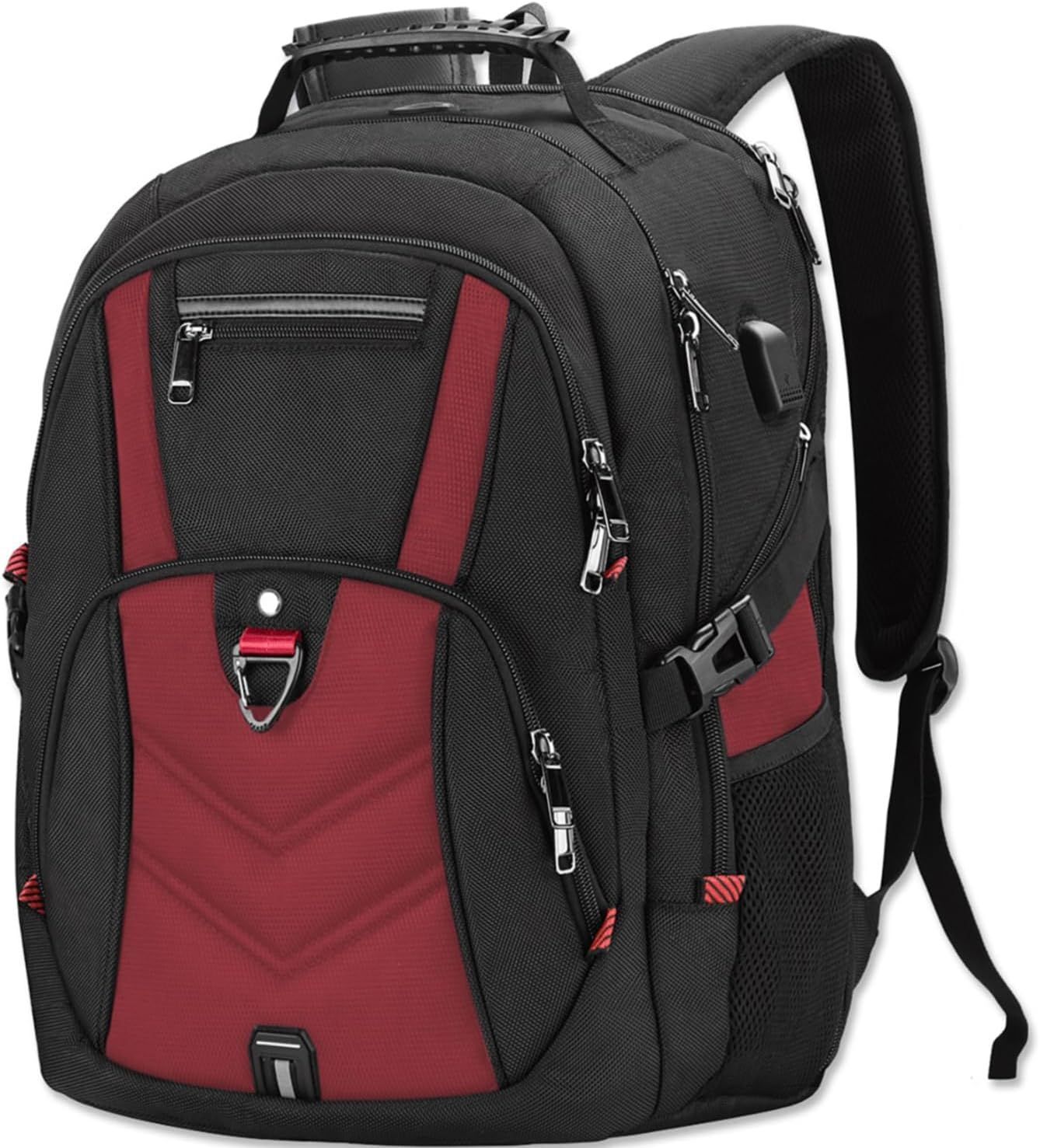 Sac à Dos Ordinateur Portable 17 Pouces Femme,Sac à Dos Grande Capacité 50L,Antivol Imperméable Sac a Dos PC Portable avec Chargement USB Sac à Dos pour Loisirs Collège Voyage Affaire Scolaire - Rouge