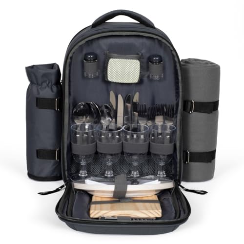 Hap Tim Sac à Dos Pique-Nique pour 4 Personnes avec couvertures en Laine et Compartiment Isotherme (Gris)