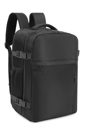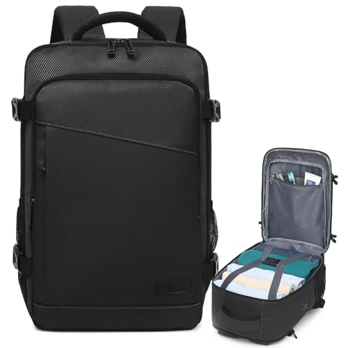 YOKGO Sac a Dos Voyage Cabine Avion 40x30x20 Bagage Cabine,24L-30L Évolutif Sac à Dos Avion pour Transavia, Ryanair, Vueling, Wizz Air,Bagage à Main 15.6'' Ordinateur Portable Homme Femme Noir