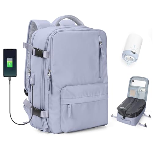MATEIN Bagage Cabine 40x30x20, Sac a Dos Voyage Cabine Avion Eurowings Ryanair 40x30x20, 30L Extensible Bagage à Main, Imperméable Sac à Dos Voyage Femme Homme pour Randonnée Scolaires, Violet Gris