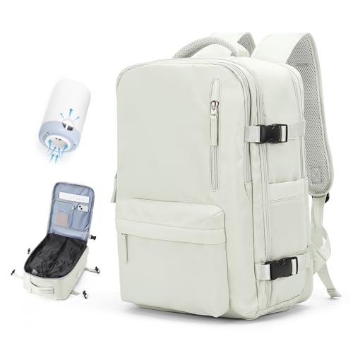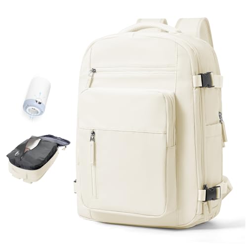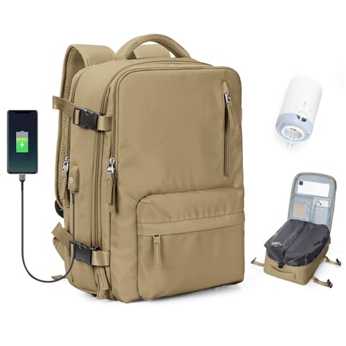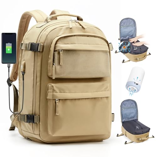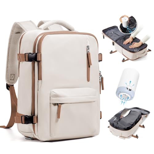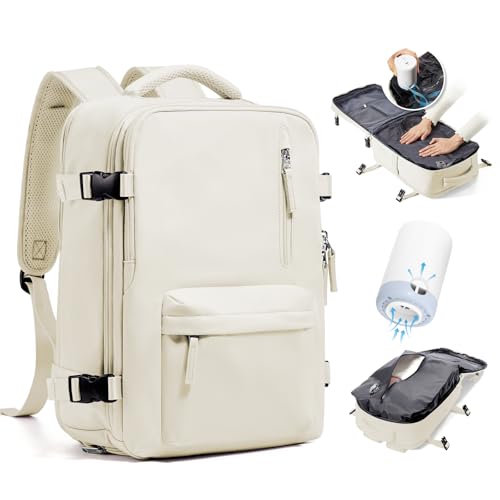 Sac à Dos de Voyage sous Vide avec Pompe - 45x36x20 cm (Easyjet Cabine) - Sac à Dos Cabine pour Avion avec Compartiment PC 15.6 Pouces - Imperméable - Bagage à Main Homme et Femme Beige