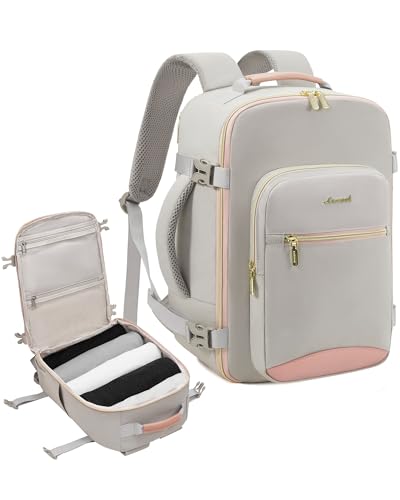 MATEIN Sac a Dos Voyage Cabine Avion, Bagage Cabine 40x30x20 Ryanair Eurowings, Imperméable 30L Extensible Sac de Voyage, Bagage à Main Femme Homme pour Étudiants École Travail Randonnée, Rose Gris