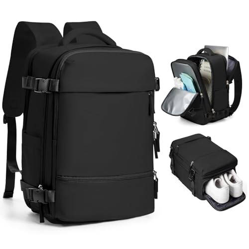 SZLX Sac a Dos Voyage Cabine Avion Sous Vide Femme Bagage Cabine Ryanair Easyjet Bagage à Main Sous Siège Sac pour Ordinateur Portable 14 Pouces Homme Imperméable avec Compartiment Chaussures,noir