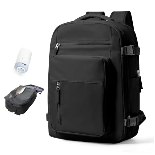 BOXSAM Sac à Dos de Voyage sous Vide avec Pompe - 40x30x25 cm (Ryanair Cabine) - Sac à Dos Cabine pour Avion avec Compartiment PC 14 Pouces - Imperméable - Bagage à Main Homme et Femme(Noir)