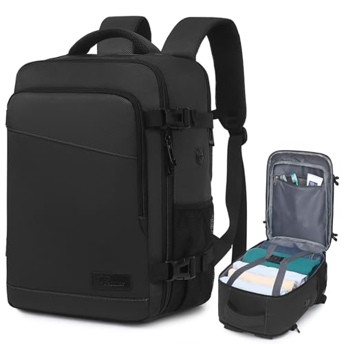 BOXSAM Sac à Dos de Voyage sous Vide avec Pompe - 45x36x20 cm (Easyjet Cabine) - Sac à Dos Cabine pour Avion avec Compartiment PC 15.6 Pouces - Imperméable - Bagage à Main Homme et Femme Noir