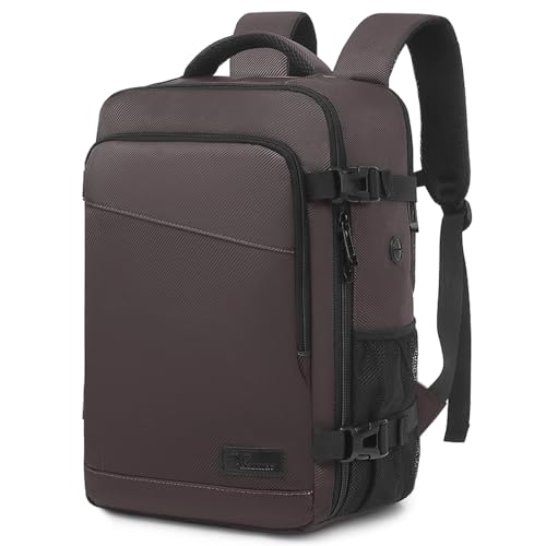 Sac à Dos de Voyage sous Vide avec Pompe - 45x36x20 cm (Easyjet Cabine) - Sac à Dos Cabine pour Avion avec Compartiment PC 15.6 Pouces - Imperméable - Bagage à Main Homme et Femme Marron