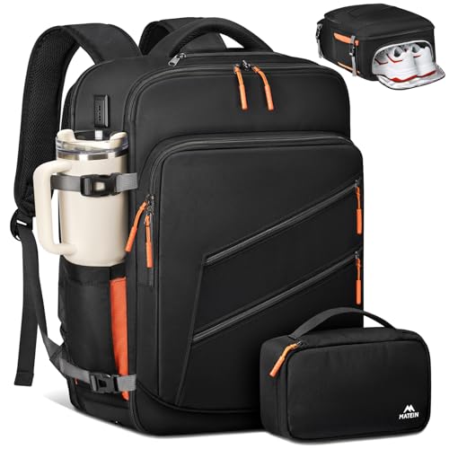 MATEIN Sac a Dos Voyage Cabine Avion Compartiment Chaussures Poche Électronique Portable, Sac a Dos PC Portable 17 Pouces USB Étanche, Bagage Cabine 45x36x20 Easyjet Pour Jeunes Voyage École, Noir
