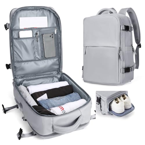 MATEIN Bagages Cabine, Sac à Dos Homme Travail Travel Backpack, Sac a Dos Voyage Cabine Avion D Affaire Approbation Vol Lufthansa AirFrance Valise Bagage pour Campus, Randonnée, Voyage, Gris