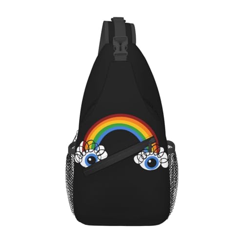 peiyeety Sac à bandoulière mignon avec yeux arc-en-ciel, sac à dos réglable pour le sport, la gym, les voyages, le cyclisme, sac à dos décontracté en diagonale