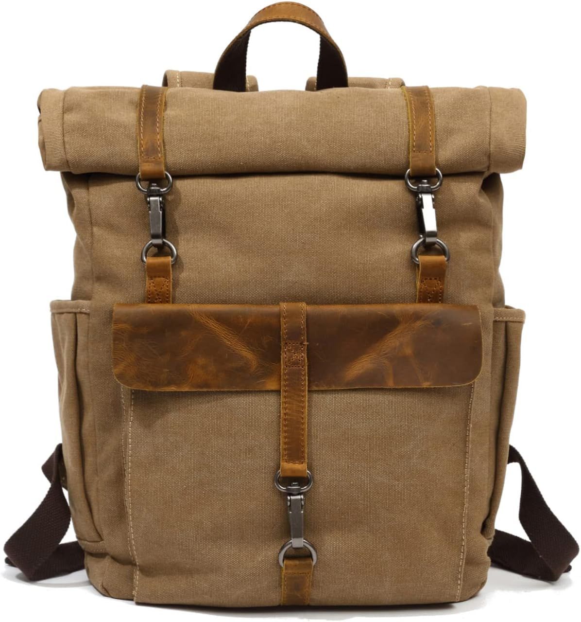 CMJAAGUR-Sac À Dos Roll Top Sac D'École Toile Sac À Dos Pour Ordinateur Portable Adapté 15.6 Pouce Sac À Dos Pour Homme Femme École Université Affaires Voyage Daypack Kaki[M2258]