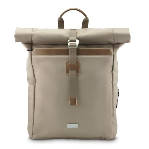Hama Sac à Dos Roll Top Silvan 21 à 29L (Sac à dos Femmes Hommes, Backpack pour Ordinateur 16.2"/41cm, Sac à Dos Etudes Voyage Sport, PET-Recyclé) Beige