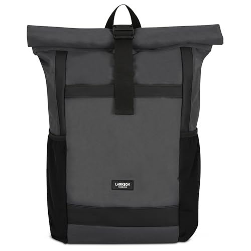 Larkson Sac à Dos Roll Top Femmes & Hommes Gris - No 2 - Backpack pour l'École, l'Université - Compartiment Ordinateur Portable 16 Pouces - Hydrofuge