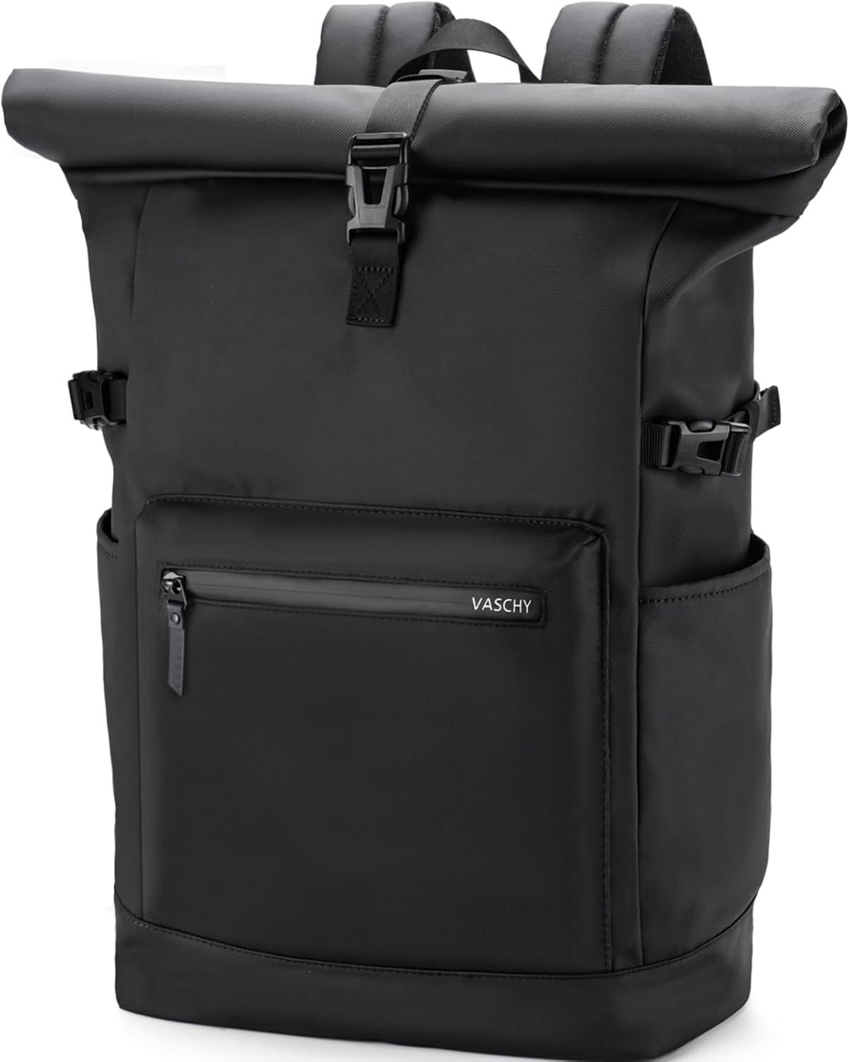 VASCHY Sac à Dos Roll Top, Grand Antivol Sac a Dos Homme Femme Voyage pour Ordinateur 15,6 Pouces Extensible Résistant à l'Eau Cartable Ados pour Travail Affaire Randonnée École Noir
