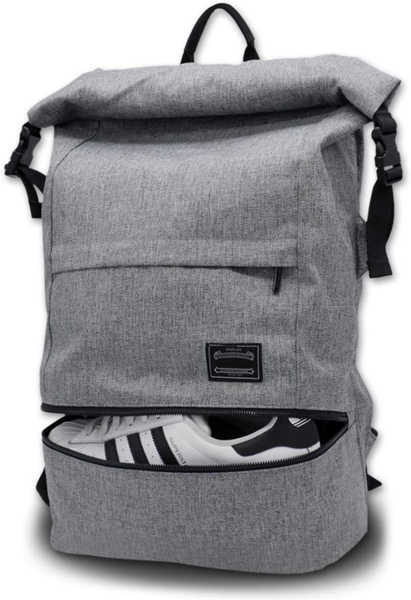 FANDARE Sac à Dos Roll Top Ultra-léger Sac d'école Sac à Dos pour Ordinateur Portable adapté 15.6 Pouce Sac à Dos pour Homme Femme École Université Affaires Voyage Daypack Gris foncé