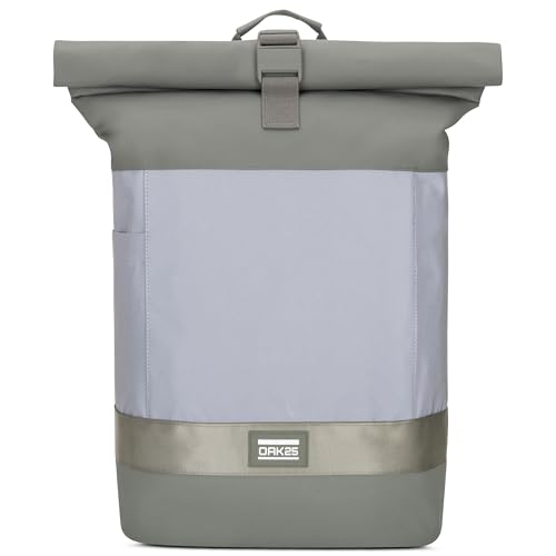 OAK25 Sac á Dos Vélo Femme & Homme Vert - Commute L - Sac Cycliste Réfléchissant - Grande Roll Top pour Voyage, College, Travail - Haute Visibilité et Sécurité -Hydrofuge