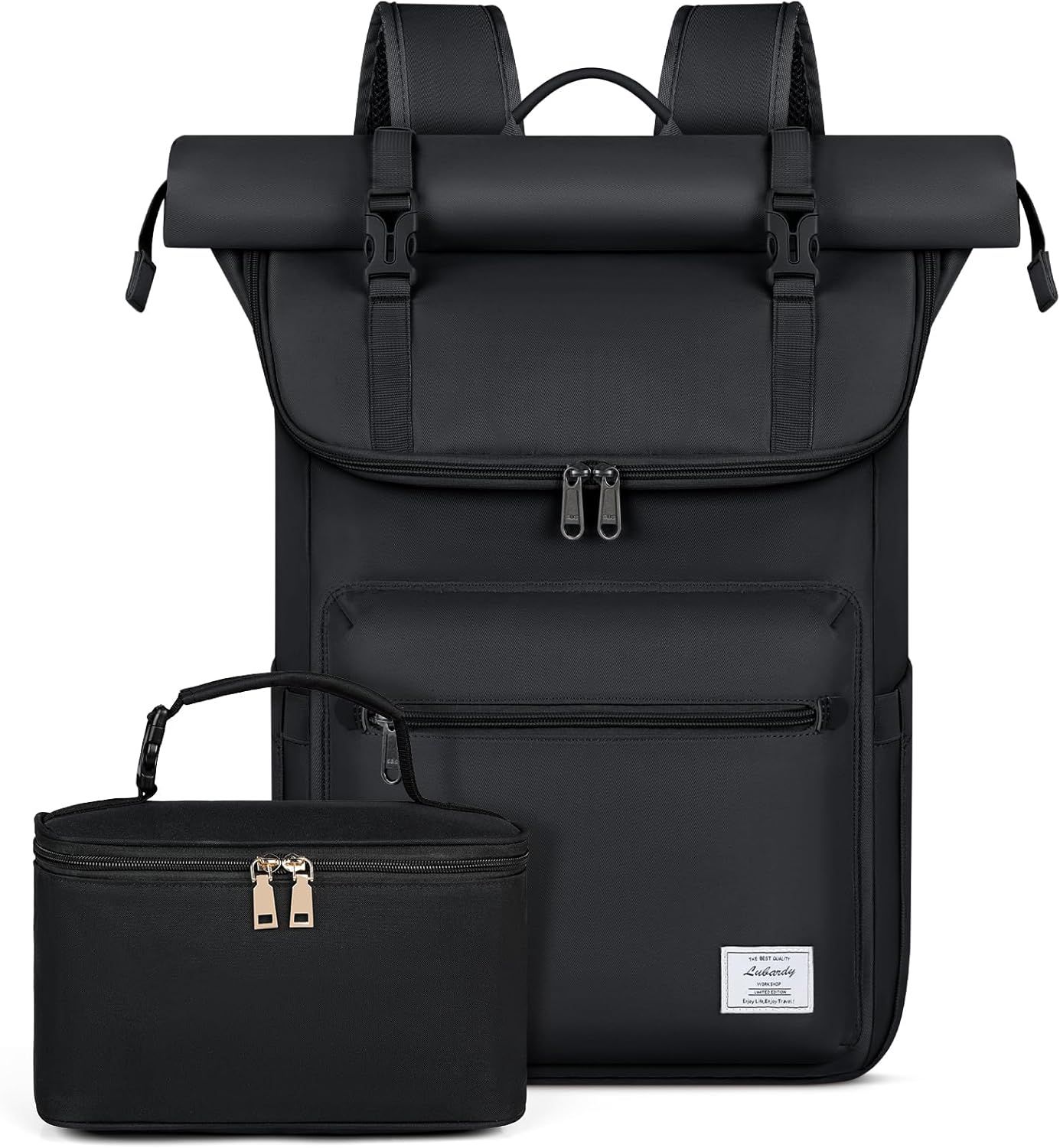 Lubardy Sac à Dos Résistant pour Homme et Femme - Voyage, Ordinateur Portable 17,3 Pouces, Roll-Top avec Port USB - Pour École, Travail, Loisirs, Randonnée
