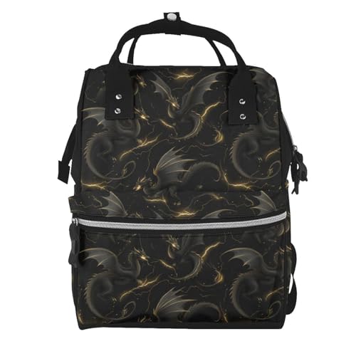 Nevjipu Sac à dos à langer pour poupée – Sac à dos à langer noir et doré avec imprimé dragon cool A imprimé, sac à dos tactique pour bébé, sac à dos de voyage, randonnée, sac à langer pour bébé, sac à