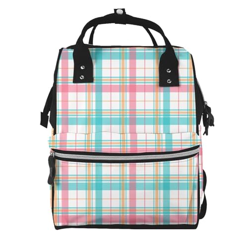Nevjipu Sac à dos à langer pour poupée – Sac à dos à carreaux arc-en-ciel pastel imprimé A maman, sac à dos tactique pour bébé, sac à dos de voyage, randonnée, sac à langer pour enfant, sac à langer