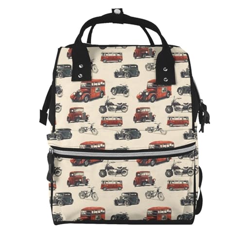 GVYGVY Sac à dos à langer pour poupée – Sac à dos vintage imprimé voiture A pour maman, sac à dos tactique pour bébé, voyage, randonnée, sac à langer pour enfant, sac à langer pour papa, maman, femme