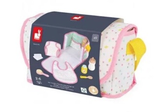Janod - Sac Nursery - Jouet en Bois et en Tissu - Sac à Langer pour Poupon - Dépliable en Table à Langer Poupon - 8 Accessoires - avec Bavoir, Couche, Biberon - Certifié FSC - Dès 2 Ans, J06501