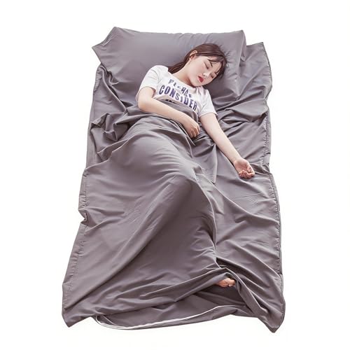 Xynovate Draps de Sac de Couchage Cotton, Sac de Couchage 2 en 1 avec Fermeture éclair, Sac a Viande Ultra légèr avec Compartiment Oreiller Ajouté, Les Auberges et Les Cabanes de Montagne,Gris