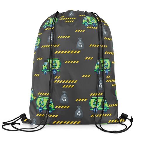 Homewish Sac Cordon Enfant 33 x 40 cm Camion À Ordures, Sac de Sport Ado Garcon Camion de Chantier, Sac Tissu Vert Noir Véhicule Voiture, Sac Piscine Camions Imprimés