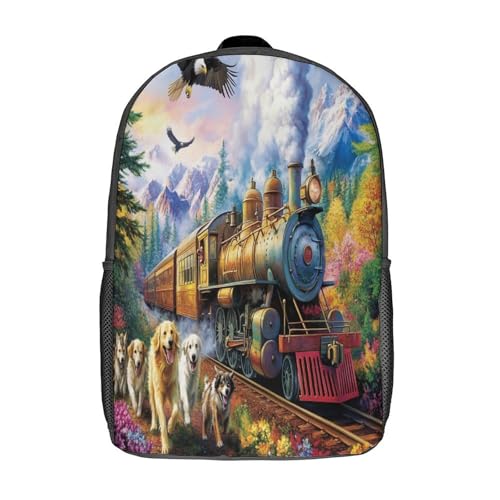 kaiyun Arbres et fleurs colorés Sac À Dos,Sac Scolaire Enfant Ado Camping,Voyage Cartable Scolaire,Train Golden Retriever HuCiel Aigle Sacs Scolaires,17inch