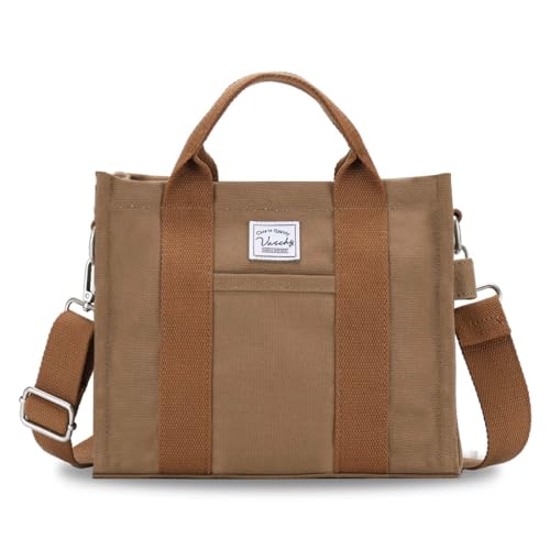 VASCHY Petit Cabas Femme, Tote Bag Femme en Toile Sac à Main Fille Cabas Courses Élégant Sac à Bandoulière Ado avec Poche Zippée pour Travail, Loisir, Voyage Marron
