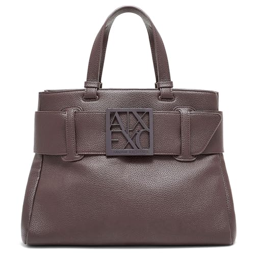 Armani Exchange Sac de shopping essentiel pour femme, avec logo ton sur ton, marron, taille unique