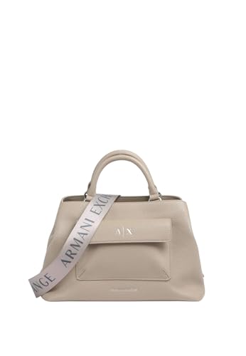 Armani Exchange Nicole, Sustainable, Silver Logo, Front Pocket, Sac de Shopping Femmes, Sable