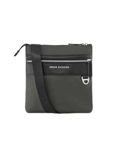 Armani Exchange Okinawa Sac à bandoulière pour homme avec plaque logo, fermeture éclair, gris foncé