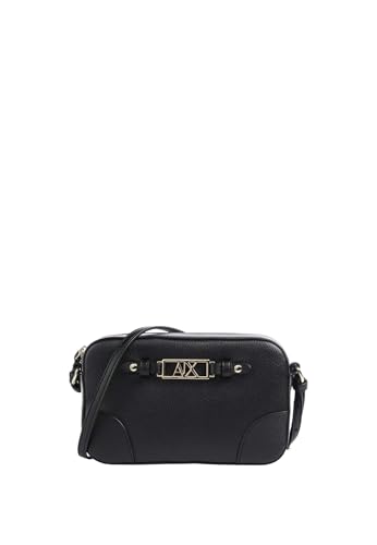 Armani Exchange Amy, Sustainable, Gold Logo Plate, Sac à bandoulière Femmes, Noir, Taille Unique