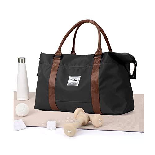 Sac de Voyage Femme Sac de Sport Sac Voyage Grand Taille Bagage Cabine Easyjet Sac Weekend Sac Cabine Avion Sac Polochon Bagage a Main Sac Maternité,Noir - Brun