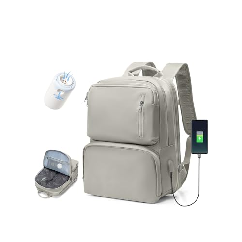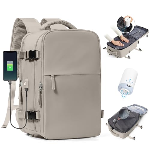 BJLFS Sac à dos sous vide avec pompe Ryanair Wizzair 47x33x22 Femme Sac Cabine Avion sous vide Bagage Cabine Easyjet Bagage à Main Sac pour Ordinateur Portable 14 Pouces Homme Beige