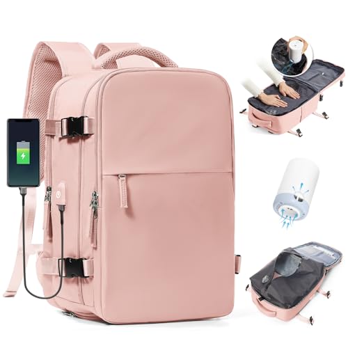 BJLFS Sac à dos sous vide avec pompe Ryanair Wizzair 40x30x20 Femme Sac Cabine Avion 40x30x20 sous vide Bagage Cabine 45x36x20 Easyjet Bagage à Main Sac pour Ordinateur Portable 14 Pouces Homme Rose