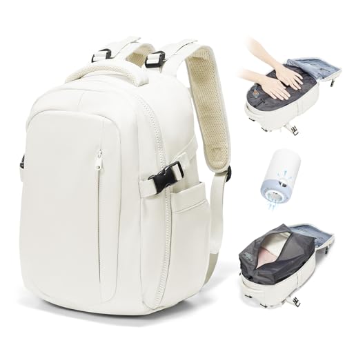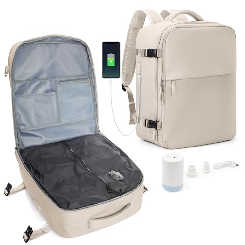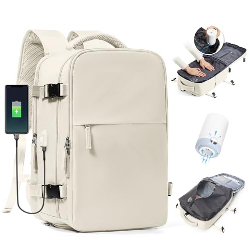 BJLFS Sac à dos sous vide avec pompe Ryanair Wizzair 40x30x20 Femme Sac Cabine Avion 40x30x20 sous vide Bagage Cabine 45x36x20 Easyjet Bagage à Main Sac pour Ordinateur Portable 14 Pouces Homme Beige